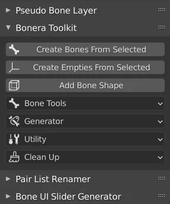 Bonera is an addon that provide a Set of Tool to Help to speed up the tedious part that is in the Manual Rigging Process.