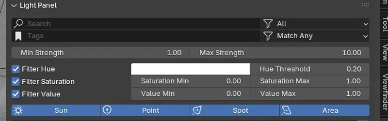 Radiant Light Panels Offers advanced filtering option for you to pinpoint and targets lights in your scene